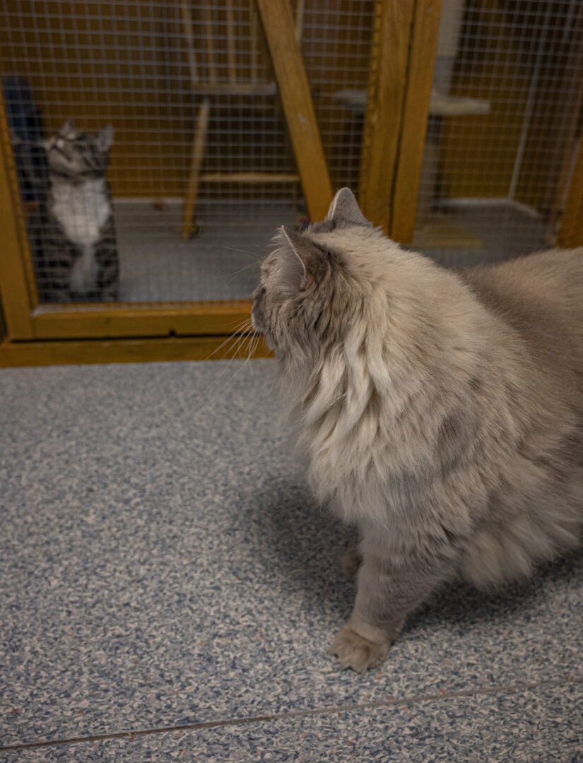 Ute skiner solen och de orangefärgade löven vajar i den friska vinden. Inne på Kalmar djurhem är det lugnt, förutom den vita långhåriga katten som jamar bakom en av de nätklädda dörröppningarna. I den vita korridoren är vissa dörrar stängda. På dörrarna hänger lappar som informerar besökare om att de inte får gå in eftersom det finns katter i karantän. I de rum där dörrarna står öppna vilar katter i alla möjliga färger och mönster i sina inhägnader. De kommer inte fram och hälsar vid nätet utan gömmer sig i sina transportväskor eller i klösträden. De har levt ett hårt liv utomhus och är inte vana vid kontakt med människor.