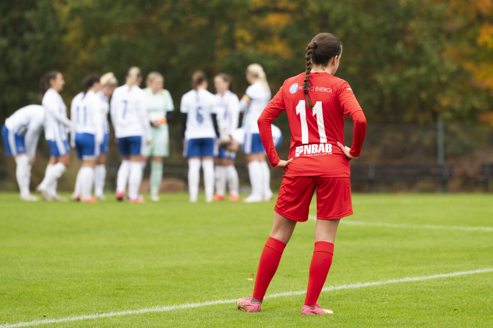 BILDREPORTAGE: Det är en grå och regnig söndagseftermiddag när Madesjö IF tar emot IFK Karlshamn på Madesjövallen för att spela den första kvalmatchen. Molnen hänger tunga över Nybro och regnet har fått åskådarna att gömma sig under sina paraplyer på läktaren. Förutom att man kan känna nervositeten inför säsongens sista hemmamatch känns också doften av en grill som står under ett tillfälligt tält bredvid läktaren.